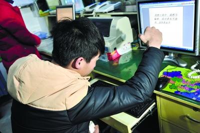 2月12日,省儿童医院康复二科,17岁的脑瘫患者廖志胜在电脑上敲出“我想上高中、我想当编剧。” 记者 武席同 摄