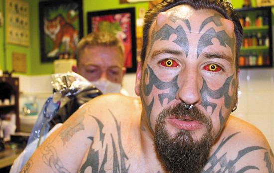 英国男子照撒旦整容:额头植入犄角 眼球文成鬼眼