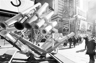日前,纽约时报广场竖起一座别出心裁的情人节雕塑。这座雕塑通过十二个观望点,用复杂、对称等特殊设计,让观众以星座的原理,通过潜望镜去寻找属于自己的“另一半”,营造充满浪漫和新奇的情人节氛围。这座雕塑由纽约布鲁克林的一家创意公司设计,以迎接即将到来的情人节。新华社记者 王雷摄