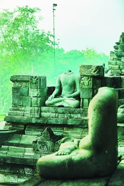 和多灾多难的印尼一样,婆罗浮屠也躲避不了人性里的仇恨、贪婪等黑暗面给它带来的灾难。1985年,恐怖分子将11颗定时炸药置于孔钟型佛塔之中,结果炸毁了9座。而东西南北各方外侧的佛像,很多已失去了头部——传言佛像头部藏有金子,于是被贪财的人们偷去。然而,数百年来,佛像的脸上一直带着若有似无的微笑,就这样静静地看着来到这里的人们——不论他们是带来一颗虔诚的心,还是不祥的灾难。