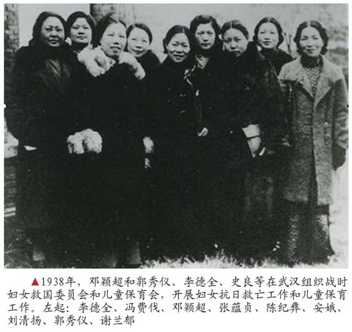 1938年初,中共长江局由邓颖超、孟庆树等人成立了妇委会,对外以陕甘宁边区各界妇女联合会代表的名义公开活动。妇委会刚一成立,邓颖超便积极投身到倡导建立妇女抗日民族统一战线工作之中。