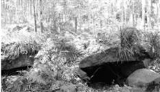 从古村落遗址往上走,村志编纂人员首次发现了10多个石砌的洞穴,这些洞的分布比较集中,其中有5个是呈一字型排列的。洞穴约1米多高、2米多深,全部坐西朝东,左、右、后三面是用大石块堆砌的石壁,石洞顶部还用大块头的重石覆盖着。往洞里看看,里面空空如也,没有任何发现。