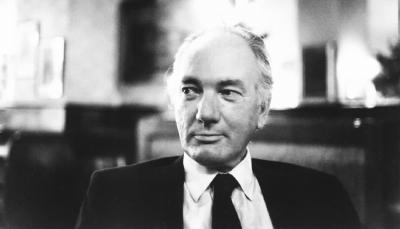 托马斯·伯恩哈德在维也纳布罗伊内霍夫咖啡馆,1984年。摄影:泽普·德赖辛格