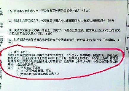成都一中学作文题目走红网络 为"星星"结局猜想