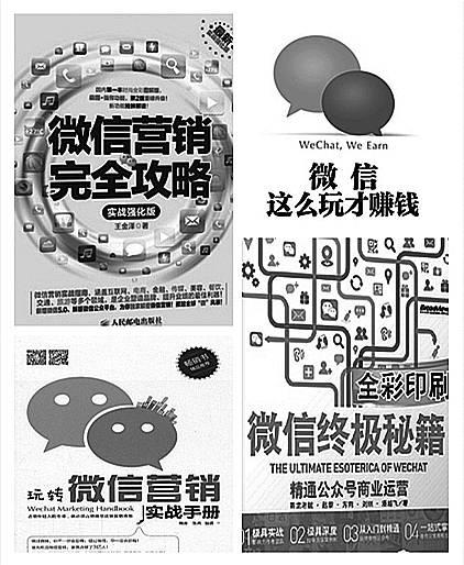 在这样的背景下,微信营销书应时而生、一时扎堆儿——《微信来了》、《微信,这么玩才赚钱》、《微信营销解密:移动互联网时代的营销革命》、《微信营销完全攻略》、《无微不至:5分钟玩转微信营销》……“微信”已俨然成为继“大数据”之后营销书的最新关键词。