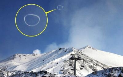 意大利火山埃特纳喷出完整“烟圈”(图)