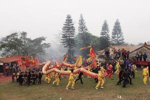 2月15日,农历正月十六,海口市永兴镇三元村一带的村民们舞龙舞狮,锣鼓喧天,亲朋满座,过起了公期。 海报集团全媒体中心记者 张茂 通讯员 吴健华 摄