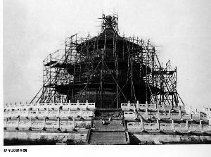 ▲1935年,搭满脚手架的祈年殿。