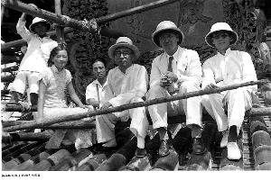 ▲查勘人员在祈年殿陡匾下留影,左二和左三是著名的古建筑专家林徽因、梁思成夫妇。
