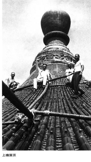 ▲古建筑专家在祈年殿屋顶上工作。