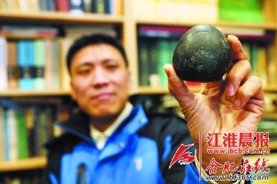 瞿先生向记者展示他珍藏了14年的石头。 记者 高博 摄