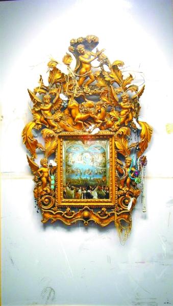 “这是照片吧?哪有这么像的。”艺术家冷军的作品《天光》在观众群中引起了一阵小讨论。作品《天光》中,复古画框中展现的是人们观看西斯廷教堂天顶壁画《最后的审判》的画面,画框上有羽毛、稻草、珠宝、天使等物品。对于如何欣赏这幅作品,作者冷军并不愿意做太多解释,“每一位观众看这幅画,都会有不同感受,这是艺术的魅力。”