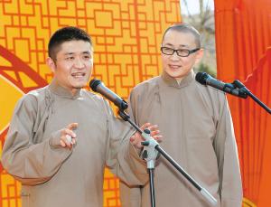 苗阜、王声(右)为观众表演陕派相声 记者 尚洪涛 摄
