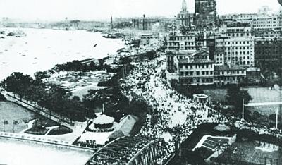 轰炸结束后,上海街头尸横遍地,图中站立者为里昂。