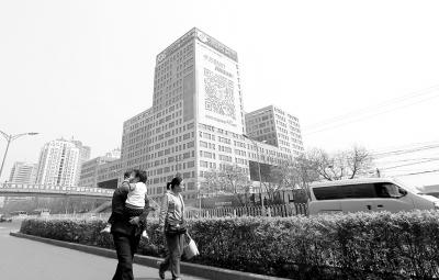 4月12日记者拍摄的悬挂在360北京办公楼外部的巨幅“360手机助手”二维码。二维码的总面积超过1200平方米。360手机助手发布的信息称,已经为二维码申报“最大楼体二维码”吉尼斯世界纪录。本报记者 郭俊锋摄