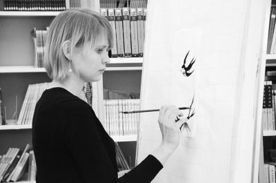 图为获得预赛第二名的利比艾宁正在作中国画。冯少杰摄