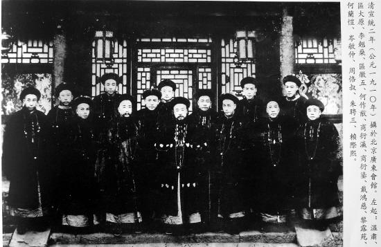 ■商衍瀛(左六)、商衍鎏(左七)宣统二年摄于北京广东会馆。
