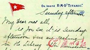 泰坦尼克号上"最后的家书"拍出20万美元(图)