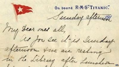 这封信由二等舱乘客埃丝特·哈特在泰坦尼克号沉没前数小时书写。先前,与泰坦尼克号相关的信件最高拍卖价为9.4万英镑(15.8万美元)。