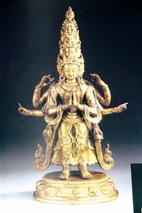 图为:清代铜鎏金十一面观音造像