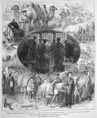 1872年10月初,英国画家威廉·辛普森作为《伦敦新闻画报》的特派记者昼夜兼程赶到北京。他得知大清皇室即将为十六岁的同治皇帝举行一场盛大的婚礼。他的使命是为婚礼的各个场景画速写,记录整个过程。在照片制版技术应用到报刊之前,版画和速写是刊物插图的主要表现手段。辛普森为《伦敦新闻画报》做的这组同治大婚图文报道,为西方读者揭开了中国皇室的神秘面纱。