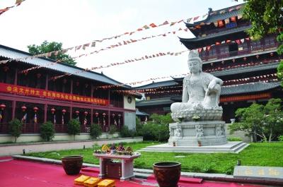 前天,第四届金陵礼佛月闭幕式在毗卢寺举行,寺内一尊高8.8米的花岗岩石自在大佛举行开光仪式。这座自在大佛位于万佛楼前,重达150余吨,由福建泉州石雕工匠用花岗岩雕刻而成。 王文 摄