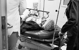 田连元则被送往沈阳当地医院一楼的急诊区治疗。田连元来的时候神志清醒,头部受伤,身上流了不少血。检查后,医生简略介绍了检查结果:田连元头部少量出血,系外伤造成的,颈椎一个椎体爆裂性骨折。