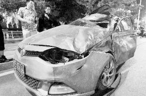 田连元和儿子田昱所驾乘的MG轿车已经严重变形。