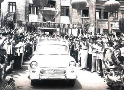 1958年6月,北京生产的第一辆被命名为井冈山牌的轿车制成。当日该厂召开了庆祝大会,一张旧照片记录了当年汽车下线后、市民兴奋拍手庆祝的画面。后来,干部和职工全力奋战,只完成了3万多辆。这个车型因未经鉴定,技术不过关,工厂又不具备批量生产轿车的条件,在小批试制后就停止了生产。