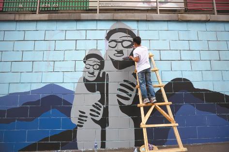 近日,沈阳市鲁迅美术学院一些即将毕业的大四学生将沈阳市西塔街公铁桥下两侧千余米长的墙面彩绘上大幅图案,成为这条韩国风情街的新风景。