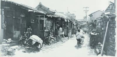 西城区烟袋斜街,況晗根据上世纪90年代的照片素材,绘于2013年。