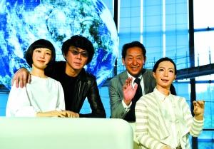 石黑浩(左二)与两个机器人合影