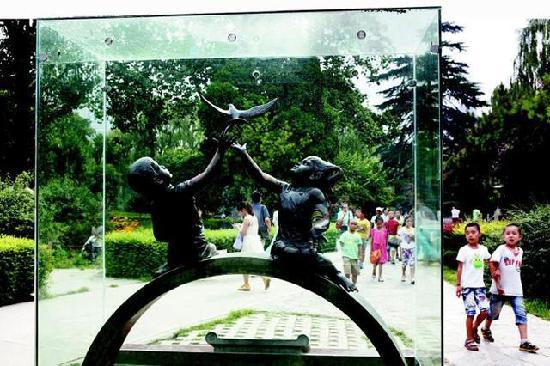 7月2日中午12点多,看到记者在给雕塑拍照,公园里几位饭后消食的路人也停下脚步观看。其中一位姓何的大爷说:“这还不都是那些偷鸽子的人造成的,谁想给好好的雕塑罩上玻璃?我家就在附近住,每天都来公园散步,光我知道雕塑的鸽子就被偷过两三次。”旁边的刘大爷也叹息说:“是呀,也不知道把鸽子偷走干什么用?那些人太没道德了,非得要用玻璃罩才能把人的道德留住,简直让人无话可说。”他们认为虽然雕塑用玻璃罩罩上不好看,但是还是支持公园这么做,毕竟比雕塑屡次受到破坏好。