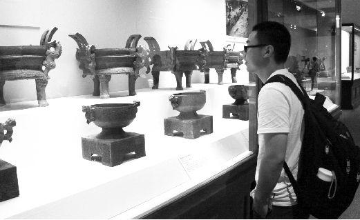 为期两个月的《湖北出土商周文物展》分成两部分,一部分以商、周至战国时期青铜容器为主,全面展示这时期湖北地区青铜文明格局、体系及礼制文化特点。商“天兽御”青铜尊、春秋“随仲芈加”青铜鼎、战国青铜鹿角立鹤、越王勾践剑等文物,充分体现先民高超的青铜铸造技术和精巧雅致的审美情趣。第二部分展示湖北出土的商周乐器,青铜质地的编钟、鼓,漆木质的琴、瑟、排箫等,目前发现最早的青铜鼓商朝兽面纹青铜鼓,九连墩墓出土的青铜编钟、曾侯乙编磬等重点文物均在其中。