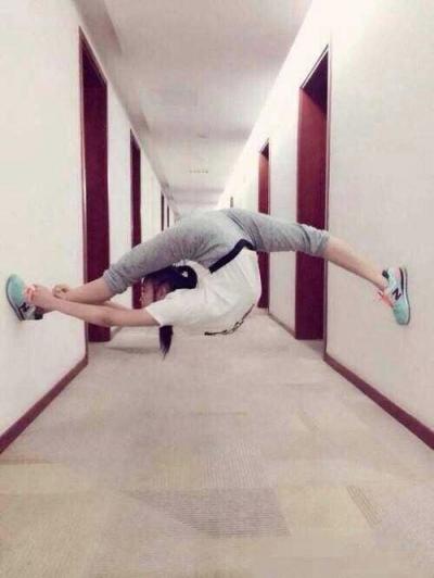 @祝君君君刘cri:柔韧的程度确实可以达到,我同学也可以,但是在墙上就真的难了。