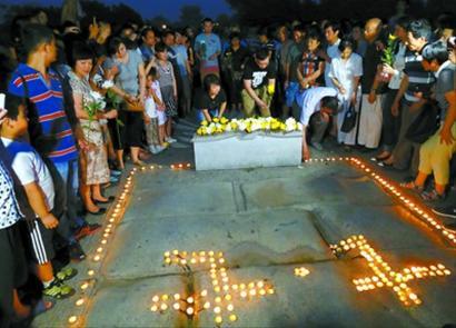 昨天,北京卢沟桥附近宛平地区的群众自发组织纪念全民族抗战爆发77周年祭奠英烈活动。 新华社发