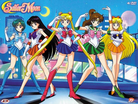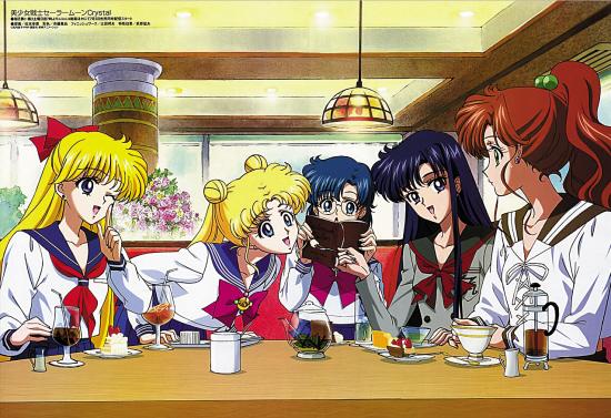 从左至右:新版里的爱野美奈子、月野兔、水野亚美、火野丽、木野真琴