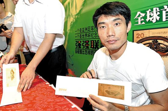 恒大球星郑智出席巴西世界杯纪念金钞首发并为买家签名 羊城晚报记者 宋金峪 摄