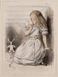1.英国插画家约翰·坦尼尔创作的《爱丽丝漫游仙境》插图中的一幅《爱丽丝与白兔》。