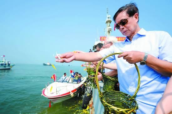 甲午海战将士后裔举行公祭 进行海祭撒花等(图)