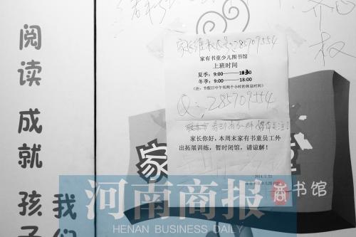 河南商报记者在大门上看到一张落款时间为7月25日的告示:家长你好,本周末家有书童员工外出拓展训练,暂时闭馆请谅解。