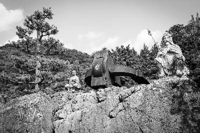 日本冈山县市郊一处偏僻的山岭中,一副本属于海洋的铁锚赫然倒卧在石台上,百年锈迹早已掩盖住它原本的钢铁本色。