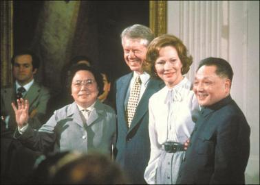 1979年1月28日至2月5日,邓小平对美国进行了为期九天的正式访问,并与美国总统吉米·卡特共同签订了《中美建交联合公报》,共同开辟了中美关系的新时代。