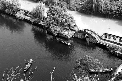 绍兴东湖景区现"阴阳河":古运河黄色 东湖水清澈