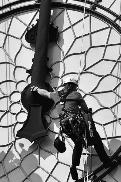 “蜘蛛人”在清洗大本钟