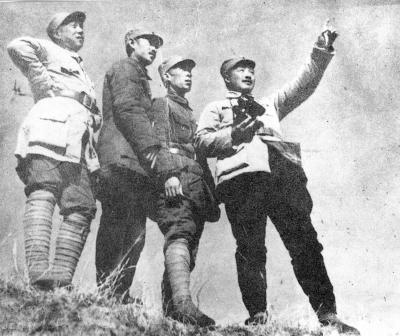 1937年10月,八路军120师师长贺龙等人在晋西北前线察看地形。两张图均由新华社发(中央档案馆提供)