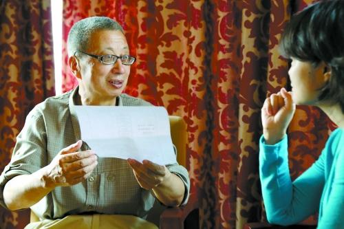 兰州牛肉拉面创始人第六代孙陈九如(左)接受商报记者采访