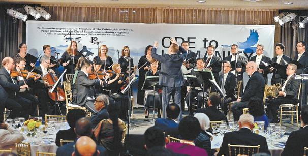当地时间9月22日晚,一场“联合国之夜音乐会晚宴暨第69届联合国大会欢迎晚宴”在纽约联合国总部大宴会厅隆重举行,享誉世界的费城交响乐团倾情演绎了来自中国深圳的儒家文化合唱交响曲《人文颂》,联合国总部回荡起华夏正音。