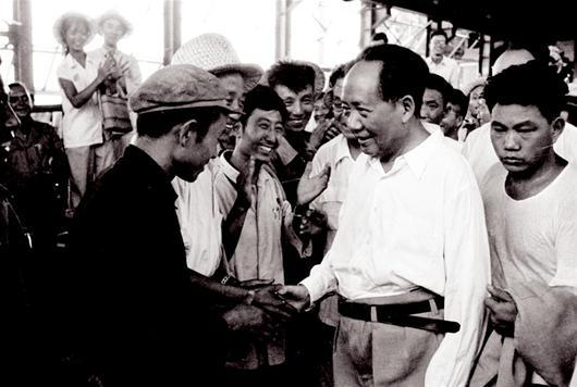楚天金报讯 图为:1956年6月,毛泽东到武汉视察武钢和长江大桥建设情况,并3次畅游长江,写下著名词章《水调歌头·游泳》。1958年9月,毛泽东视察湖北,着重视察了钢铁生产、机械制造和高等院校;9月13日,视察武钢第一号高炉出第一炉铁;9月15日,视察武重后,经武昌、大冶等地到达黄石,视察了大冶铁矿和大冶钢厂,并听取关于长江三峡工程规划情况的汇报。