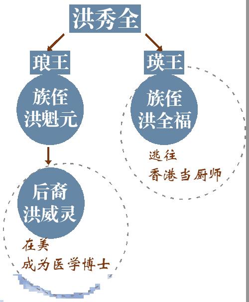 在洪秀全后人中,被封为的洪秀全族侄洪全福,在太平天国失败后逃往香港,当年曾匿迹充当厨师。